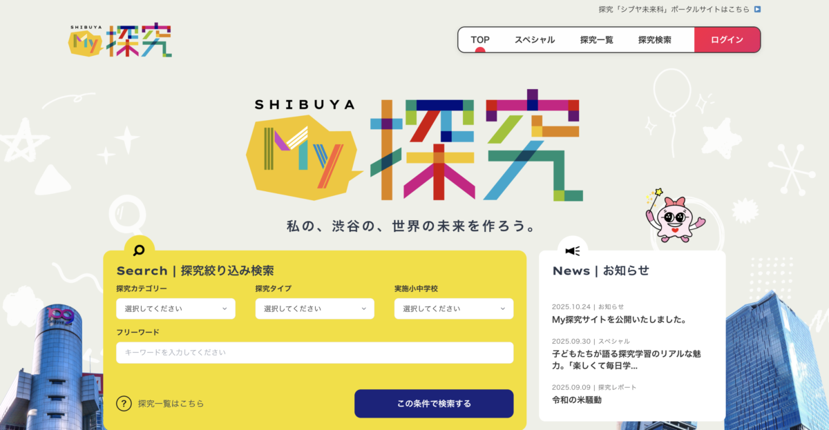 今回公開した「My探究」サイトは、「渋谷区はこんなことをやっています」とアピールするためのものではなく、子どもたちの学びをより豊かにし、先生方の実践をサポートするためのツールだと考えています。ポータルでの発信が、新たな問いや対話、コラボレーションのきっかけとなり、渋谷で生まれているチャレンジが全国に波及していくことを期待しています。