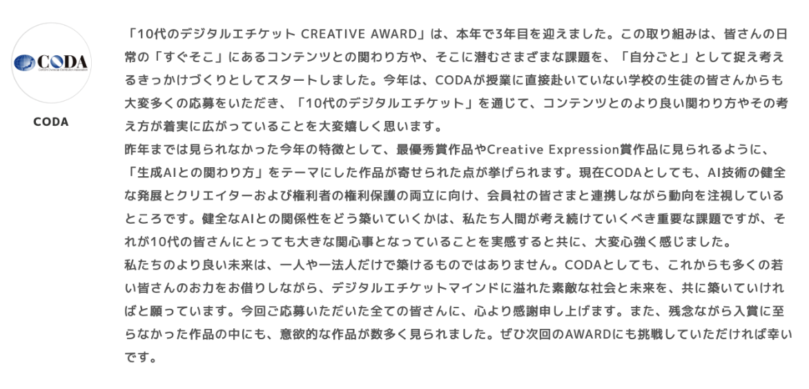 ■「10代のデジタルエチケット CREATIVE AWARD 2025」について