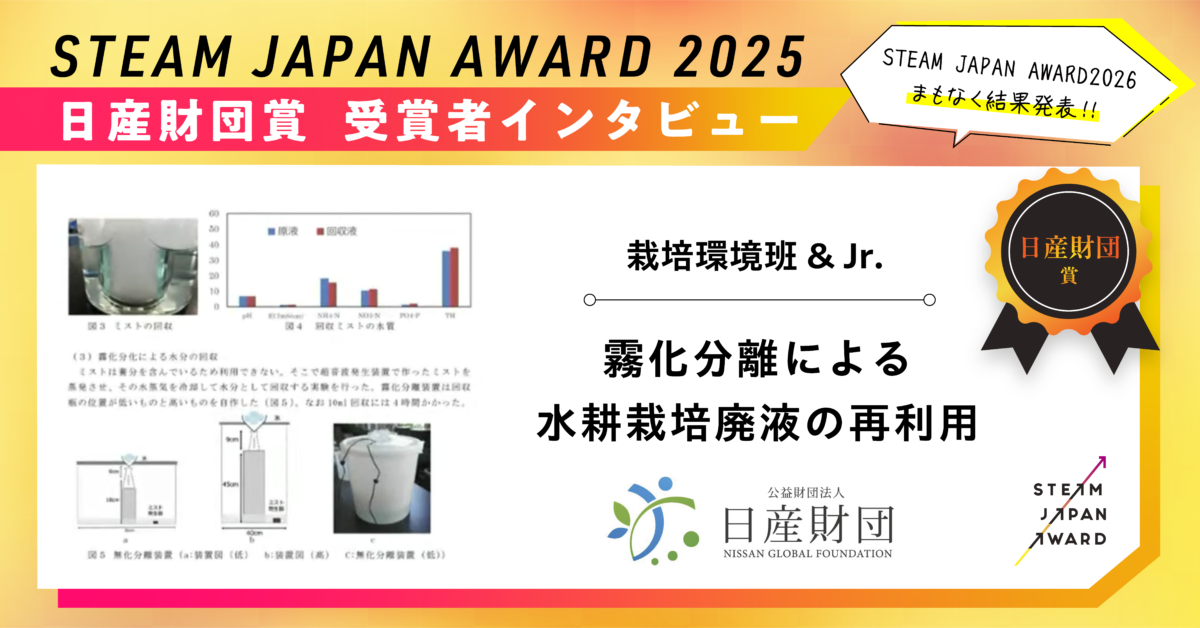 STEAM JAPAN AWARD 2026の審査結果発表が、いよいよ目前に迫っています。発表を前に、昨年度の受賞プロジェクトの中から、注目の取り組みをあらためてご紹介します。
